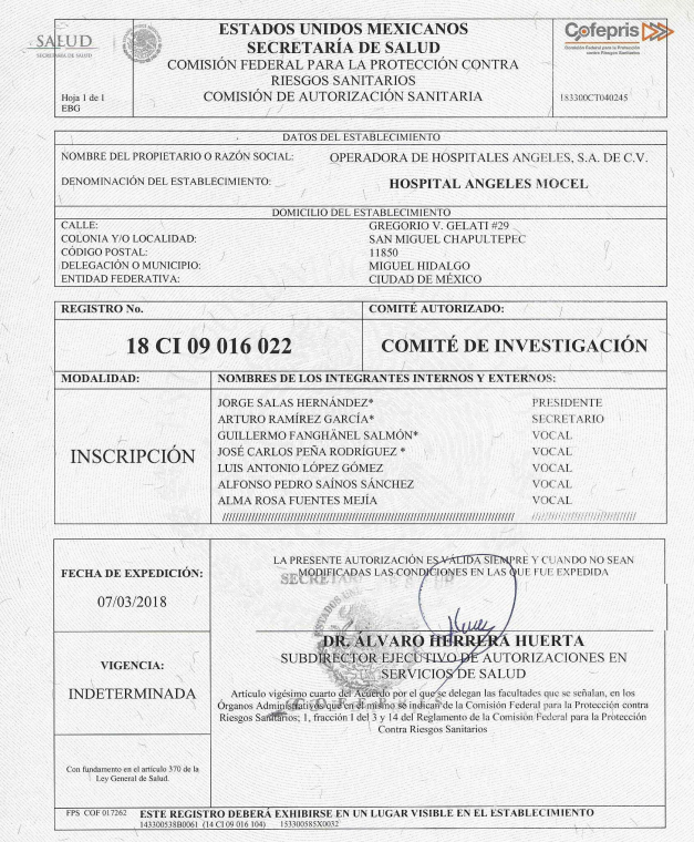 Registro del Comité de Ética en Investigación